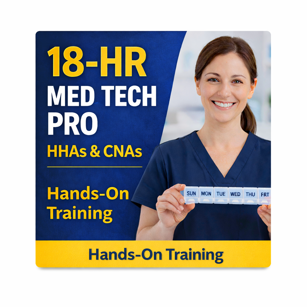 Advance your career with our 18-hour Medication Tech Pro course designed for HHAs and CNAs who want hands-on medication training. Build confidence, improve patient safety skills, and stand out to employers with practical experience.