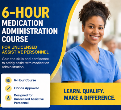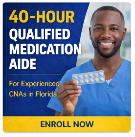 Become a Qualified Medication Aide in Florida with our 40-hour QMA course designed for experienced CNAs ready to level up. This comprehensive training covers medication safety, documentation, and includes RN validation.