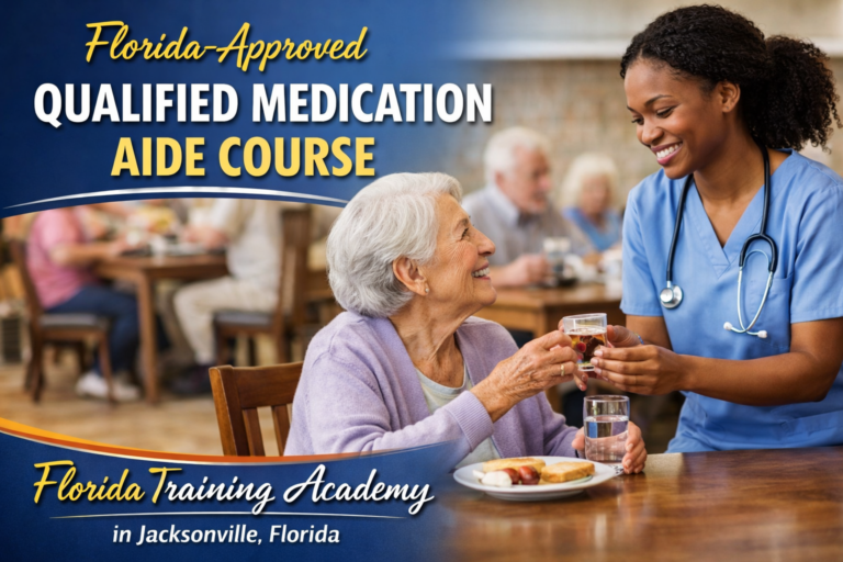 The Qualified Medication Aide (QMA) Course at Florida Training Academy is a 40-hour training program created to prepare experienced Florida Certified Nursing Assistants (CNAs) to safely assist with medication administration for residents in nursing centers.